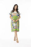 Orientique Santa Fe Boxy Dress in Aqua, Reds, Greens and Pink Print