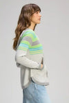 This Après hoodie by Zaket & Plover hoodie is striking in this light grey marl with lime, yellow and blue stripe with pattern