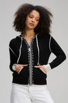 Zaket & Plover Threaded Hoodie in Black with Cream Trim