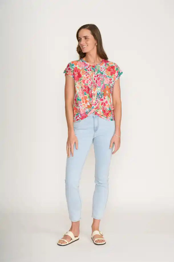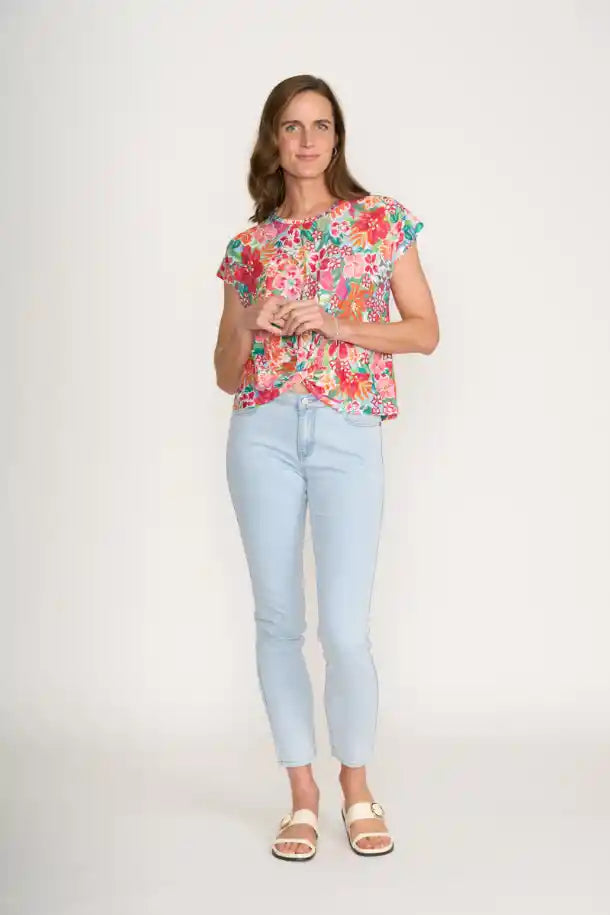 Colour: Island Time Composition: 100% Linen Care: cold hand wash or cold delicate machine wash The Do the Twist top is eye-catching in this Island time floral pattern Short sleeves...
