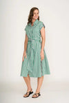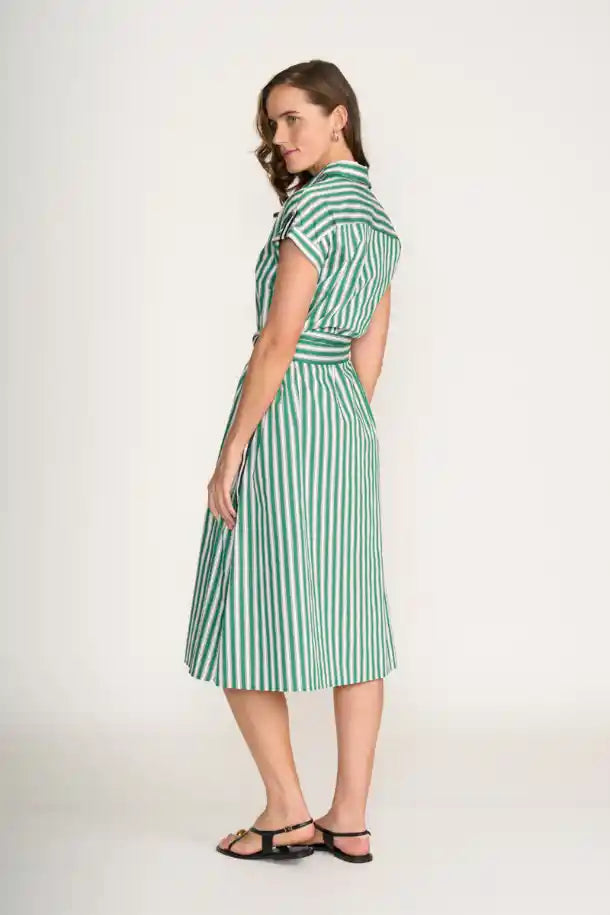 The FOIL Masterclass Dress in Deep Sea Stripe is striking in green and white stripes