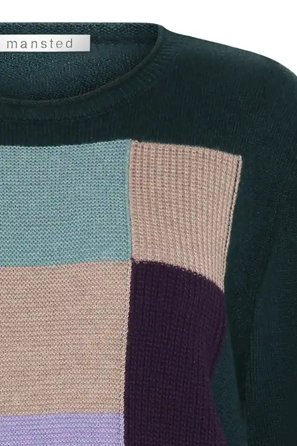 Colour: Emerald Squares Composition: 70% Wool, 30% Cotton Care: cold hand wash The Mansted Corinth jumper is stunning in emerald with shapes of aqua, purple and greens A mixture of...