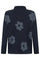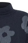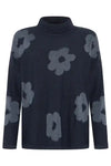 The Mansted eco bloom sweater is in navy with grey flowers front and back