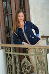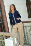 The Zaket & Plover threaded hoodie is fabulous in this dark denim with cream stitch feature